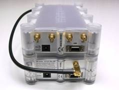 AMFE 尤其適用于萬瑞G315 系列接收機,對于使用者而言,它是完全一體的,接收機的輸入和顯示自動地擴展到3500MHz(WR-AMFE-3500)或8599MHz(WR-AMFE-8600),天線切換也是自動的。從結構上看,AMFE 與G315e 大小一致,可以整齊地上下疊放在一起,如圖。